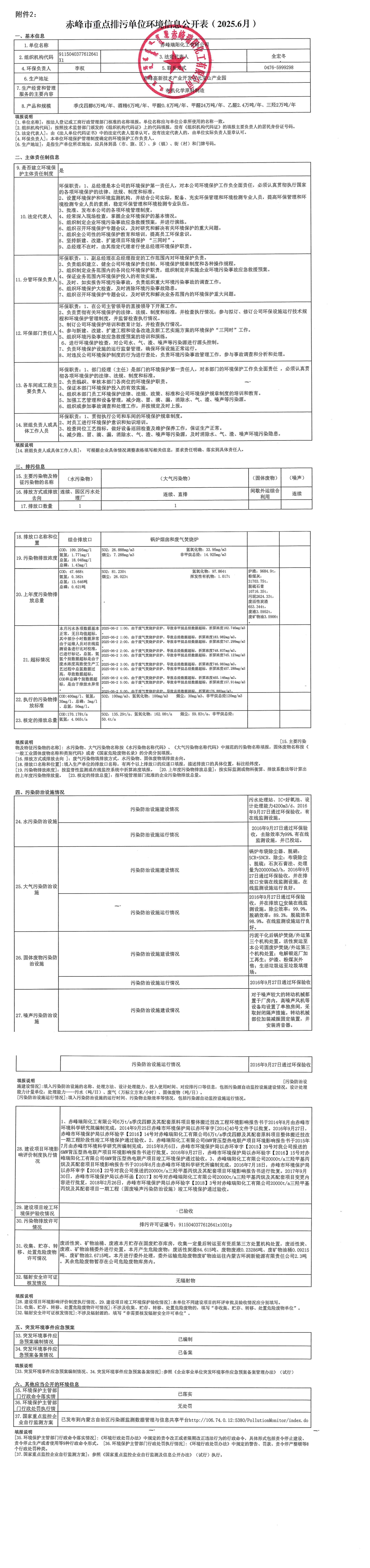 赤峰市重點排污單位環境信息公開表【2025.06】